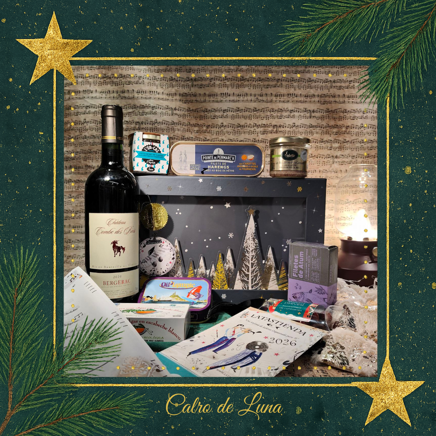 Inspirada en la serenidad de las montañas y la música, la caja regalo “Claro de Luna” es una pieza elegante que invita a disfrutar del invierno con calma y sabor.