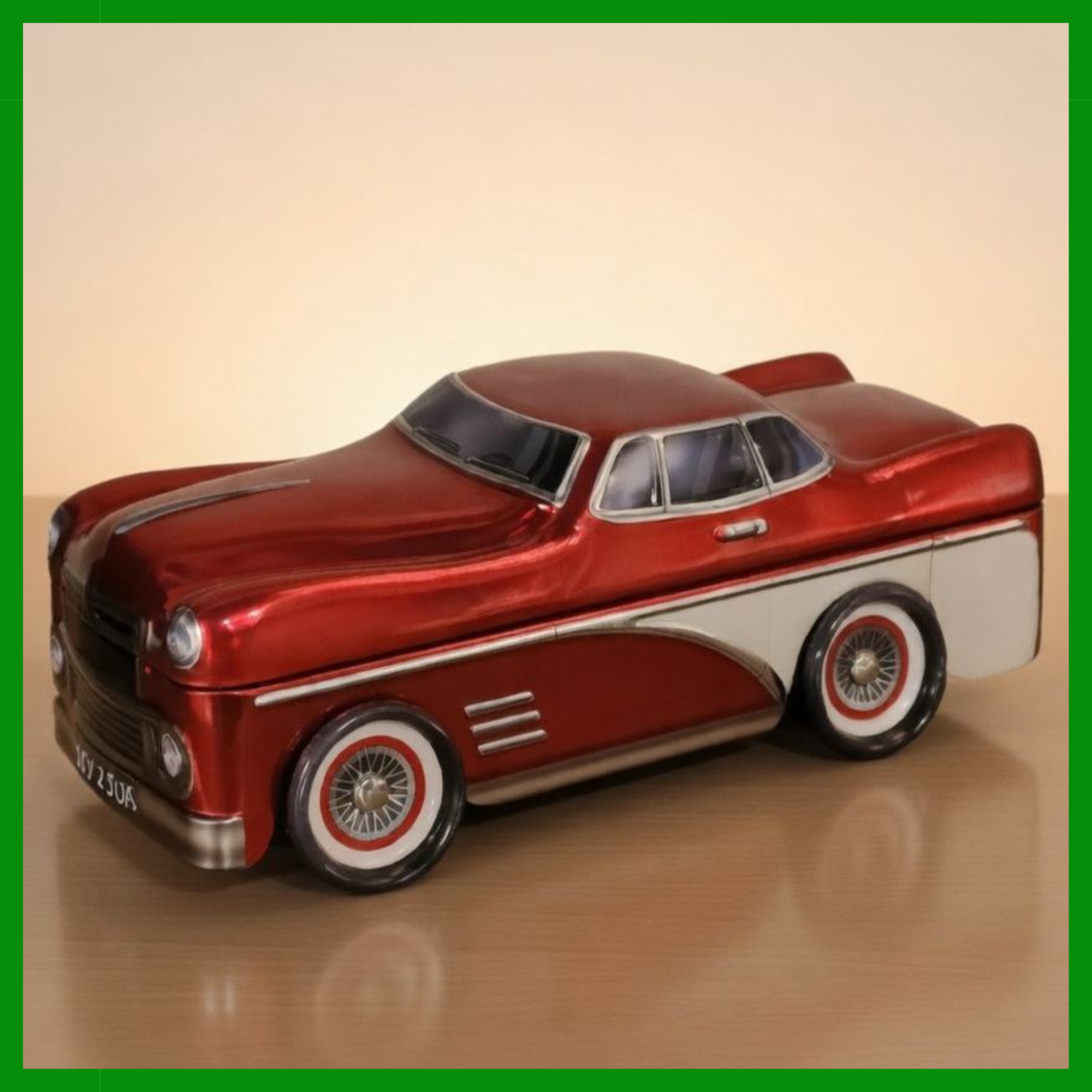 El coche de papá es una divertida caja metálica con forma de coche vintage en formato limusina, que esconde en su interior una selección de conservas gourmet, convirtiéndose en un regalo original.