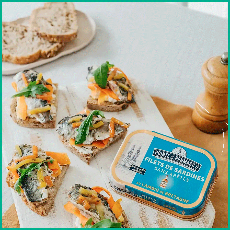 Sardinas de pesca responsable, esta receta combina los sabores con armonía para ofrecerle una conserva excepcional. Original y refinado, se cocina con lambig de Bretagne, un brandy resultante de la destilación de la sidra, hecho a mano por la destilería de los Menhirs.